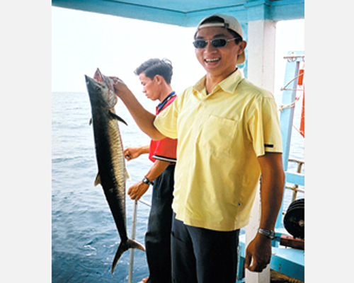 About 10.30 am , we ship anchors and fishing Grouper fish.